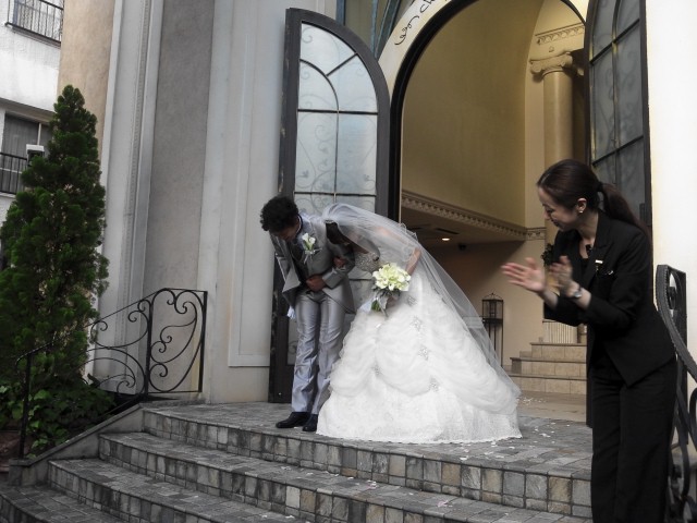 教会での式~披露宴、朝に降っていた雨もやんでくれたし、雰囲気のあたたかい、いいお式でした。